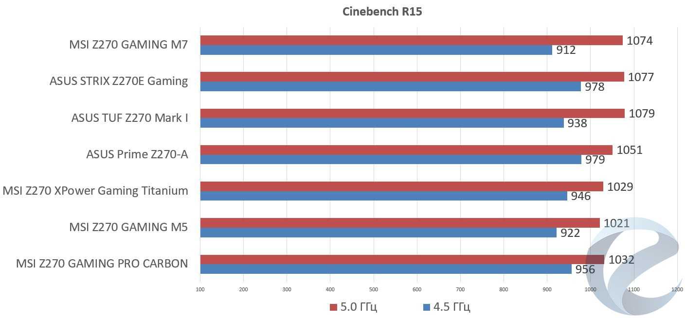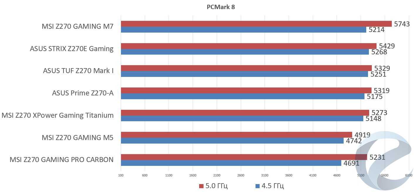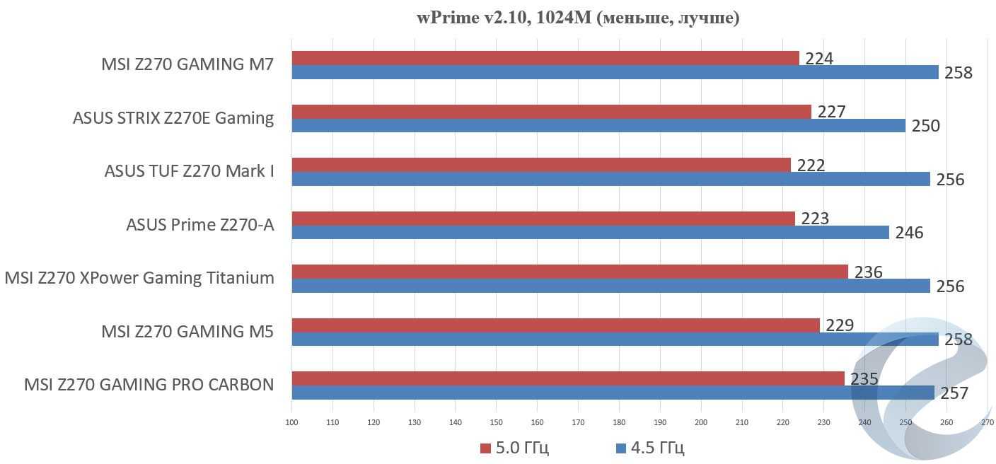 Протестируем материнскую плату в популярных бенчмарках на двух значения частоты процессора: 4.5 ГГц с автоматическим напряжением и на частоте 5 ГГц.