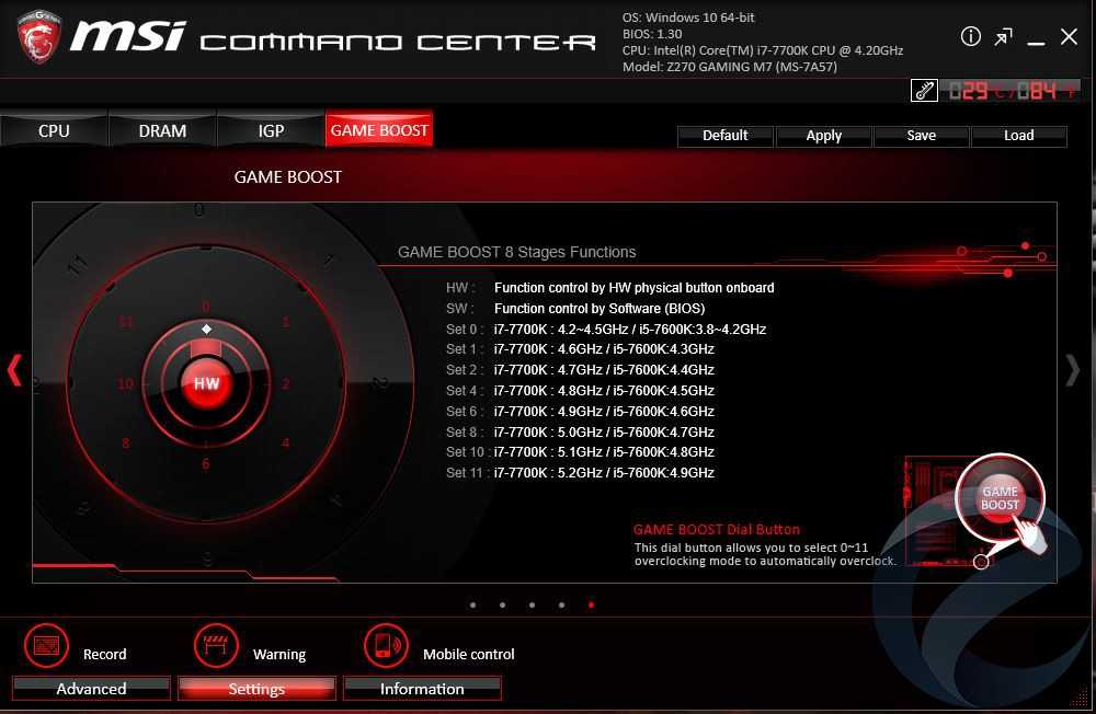 Утилита MSI’s X-Boost позволяет выбирать разные профили настроек оборудования для различного применения.