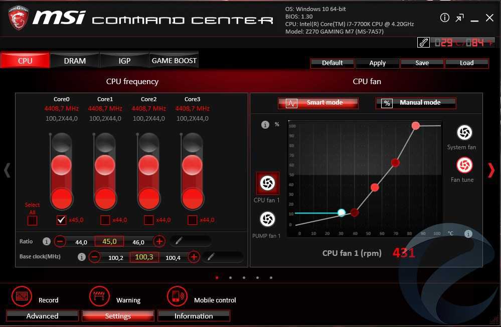 Наверняка многим будет наиболее интересна утилита «Command Center». Действительно, это и есть командный центр по управлению функциями разгона. Большинство возможностей, которые есть в соответствующем разделе BIOS, доступны и из операционной системы.