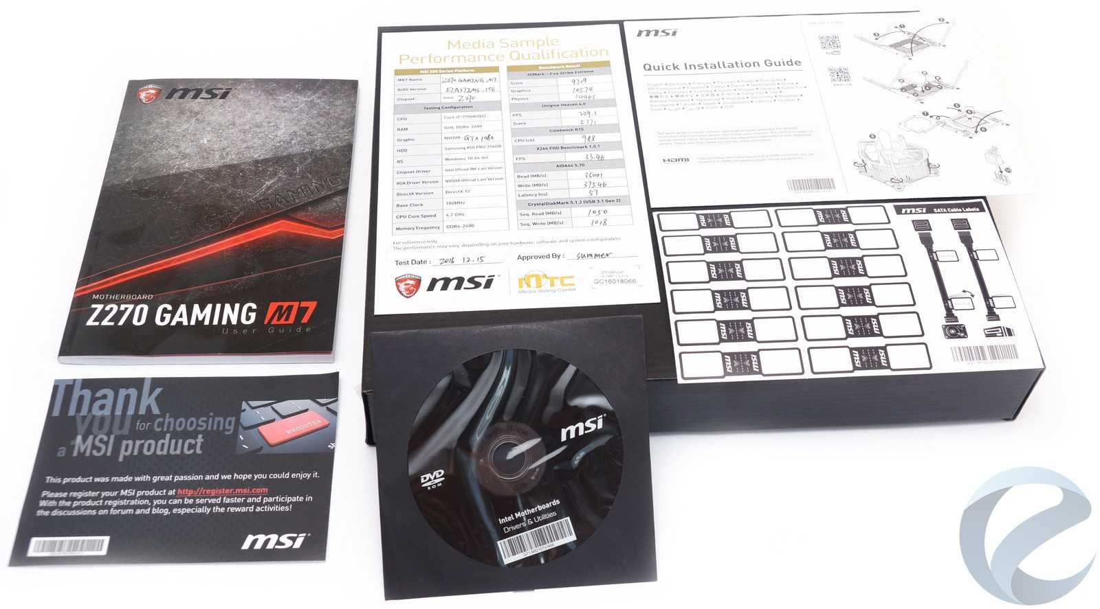 Из бумаг у нас в наличии инструкция пользователя, диск с ПО, сертификат качества, инструкция по установке процессора, маркировочные наклейки на SATA кабели и карточка регистрации продукта.