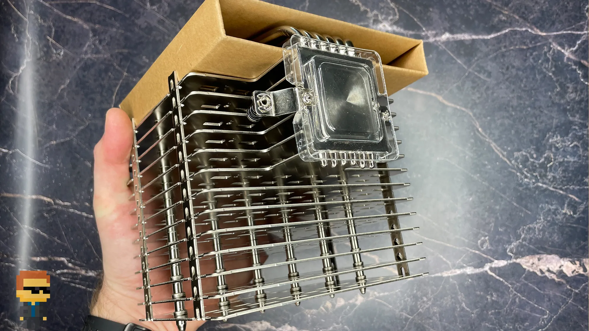 Кулер выглядит солидно. Массивный без малого 16-сантиметровый металлический «куб» весом более килограмма.