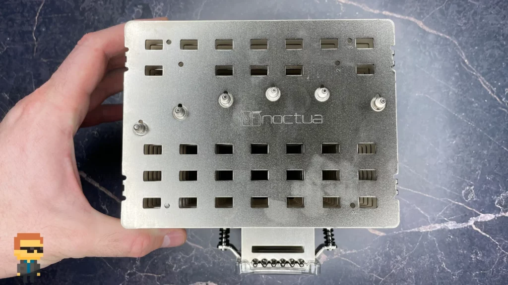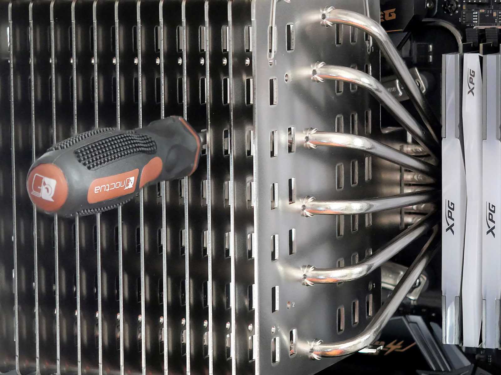 Ребра не только выступают, но подняты вверх на 4 см. Благодаря данному конструкторскому решению возможно применение Noctua NH-P1 в сборках с процессорами HEDT. Но некоторые особенности форм-фактора придется учесть и ограничиться модулями RAM высотой не более 45 мм. ОЗУ нужно поставить перед монтажом Noctua NH-P1.