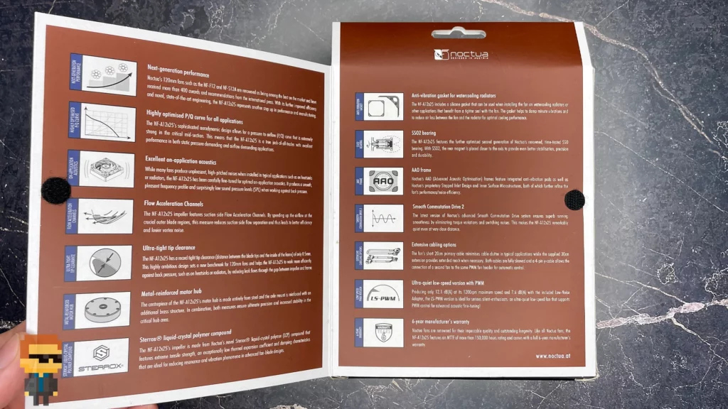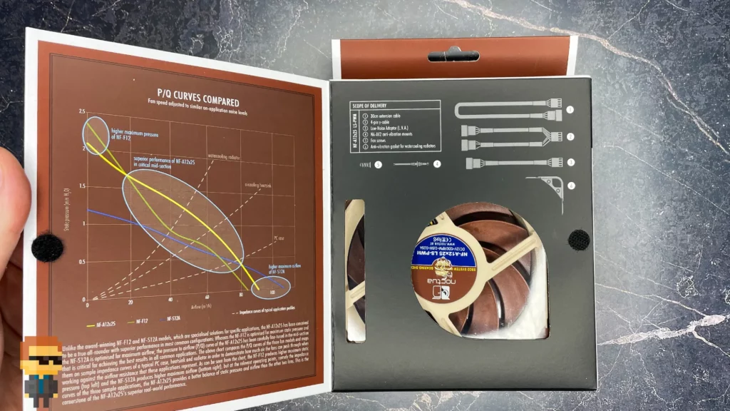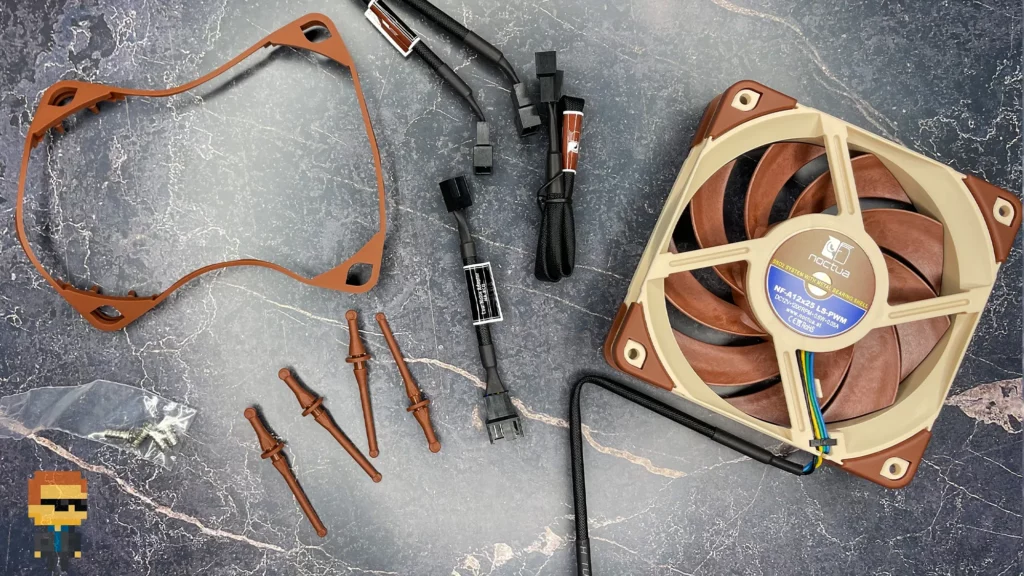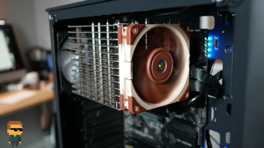 Вентилятор процессорного кулера — самый громкий компонент мощного компа. Noctua NH-P1 избавляет от раздражающего звука, но нужно собирать ПК в хорошо продуваемый корпус. Noctua NH-P1 охлаждает ЦП с низким и умеренным выделением тепла — на базовых задачах. При высоких нагрузках на помощь приходит вентилятор NF-A12x25 LS-PWM. Вентилятор стандартный, может применяться и с другими кулерами.