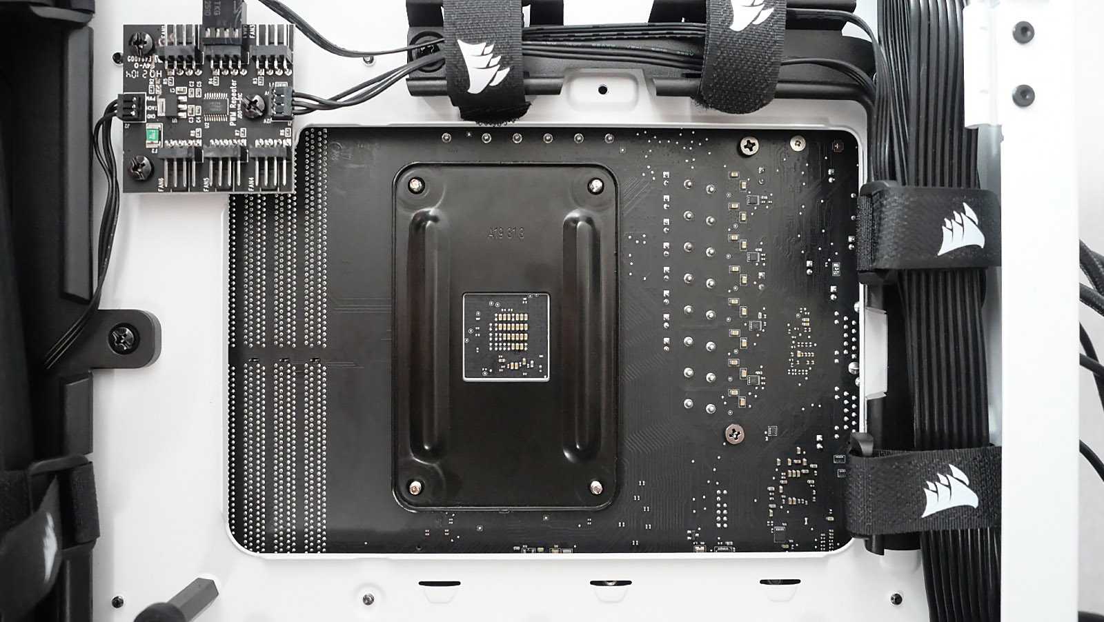 Установка фронтальных креплений вокруг сокета осуществляется на заводской бэкплейт, который идёт вместе с материнской платой.
