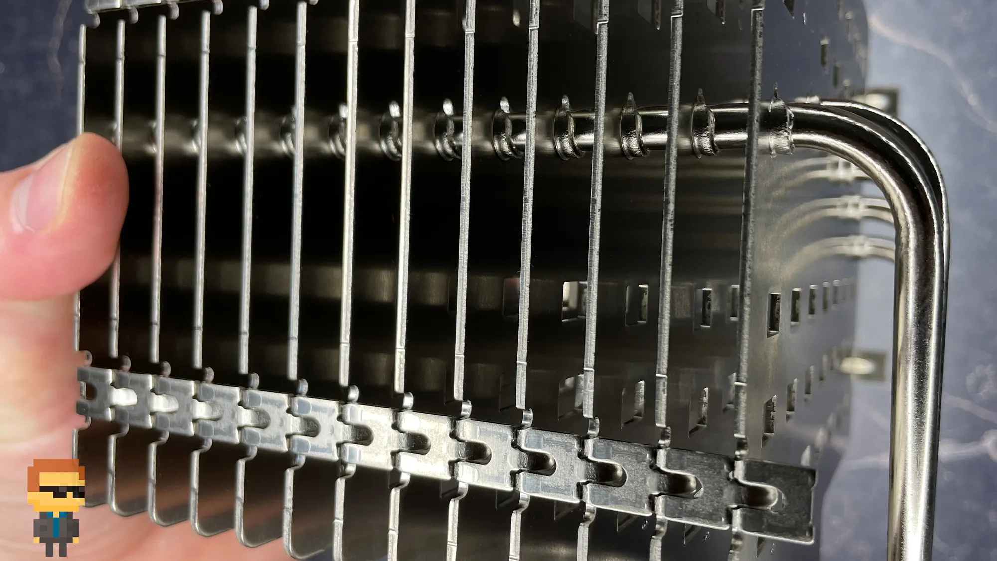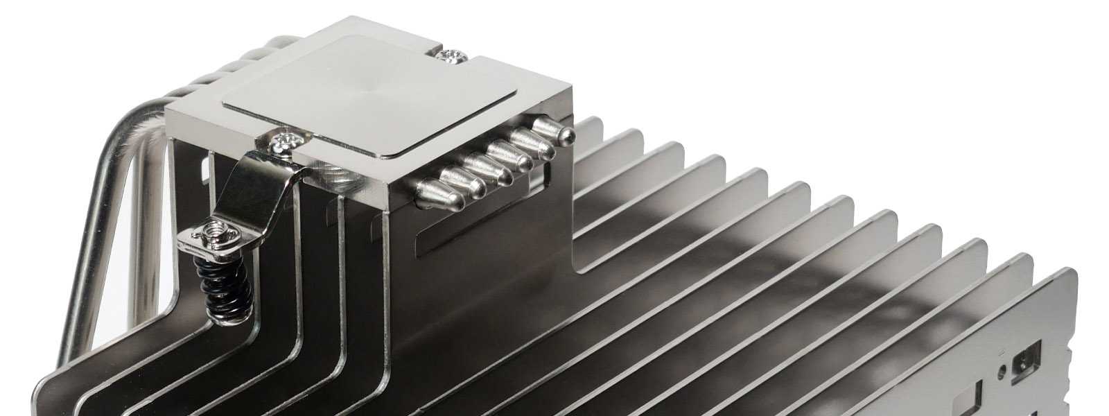 Ребра радиатора толстенные — 1,5-миллиметровые. Причем размещены на значительном расстоянии друг от друга. Зазоры между пластинами 0,85 см. Благодаря такой конструкции и без вентилятора справляется с охлаждением центрального процессора.