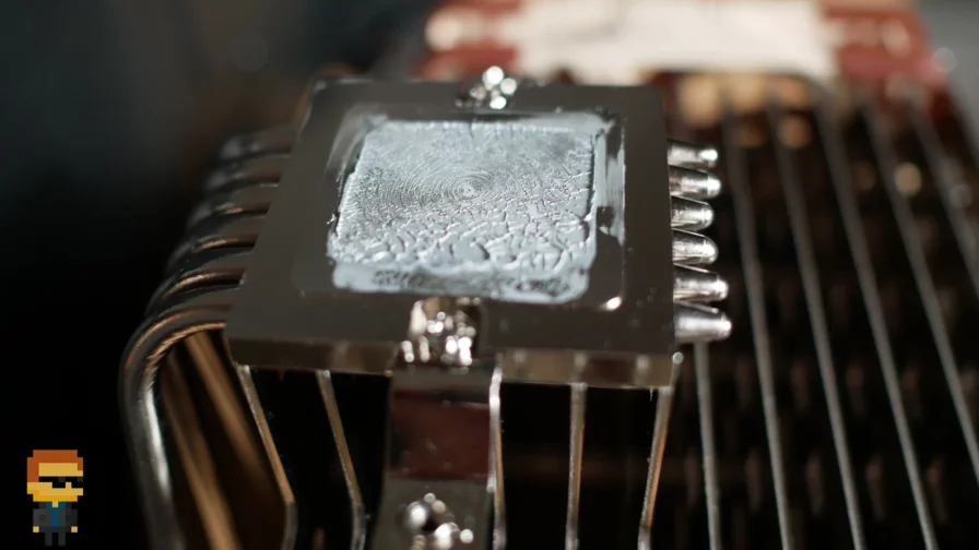 Затем нужно нанести очень маленькое количество пасты и равномерно распределить её с помощью прилагаемой лопатки. К счастью, Thermal Grizzly Conductonaut поставляется со всеми инструментами, которые делают этот процесс максимально простым; просто следуйте инструкциям.