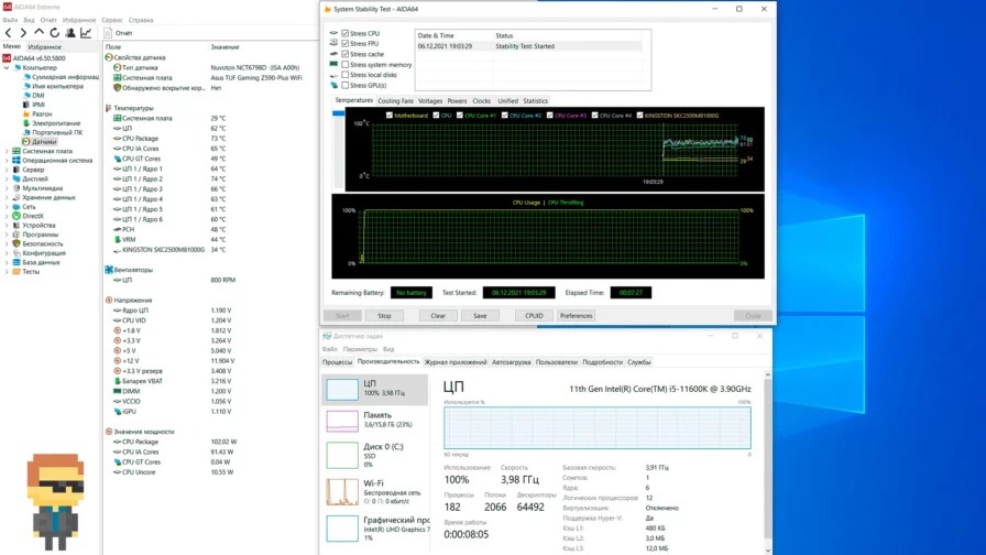 В AIDA64 проведено тестирование стабильности системы. Причем со стресс-тестом FPU, который заслуживает особого внимания.