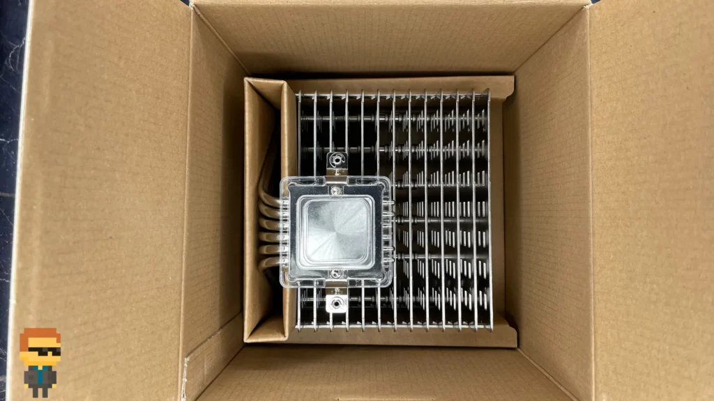 Кулер плотно зафиксирован картоном во избежание механических повреждений при транспортировке.