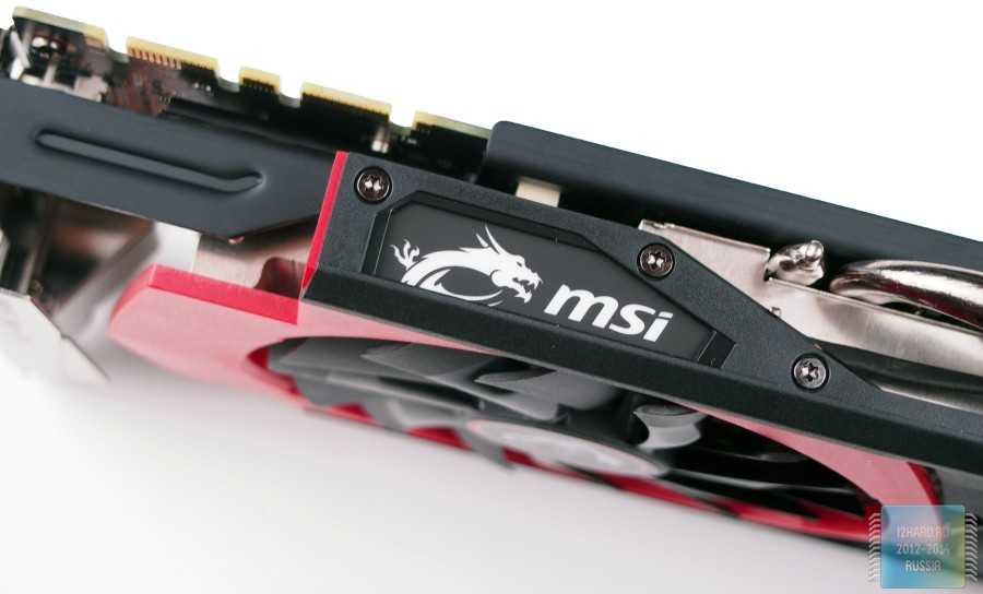 Торцевая часть видеокарты не лишена полезных элементов – тут по задумке производителя реализована фирменная символика с подсветкой.