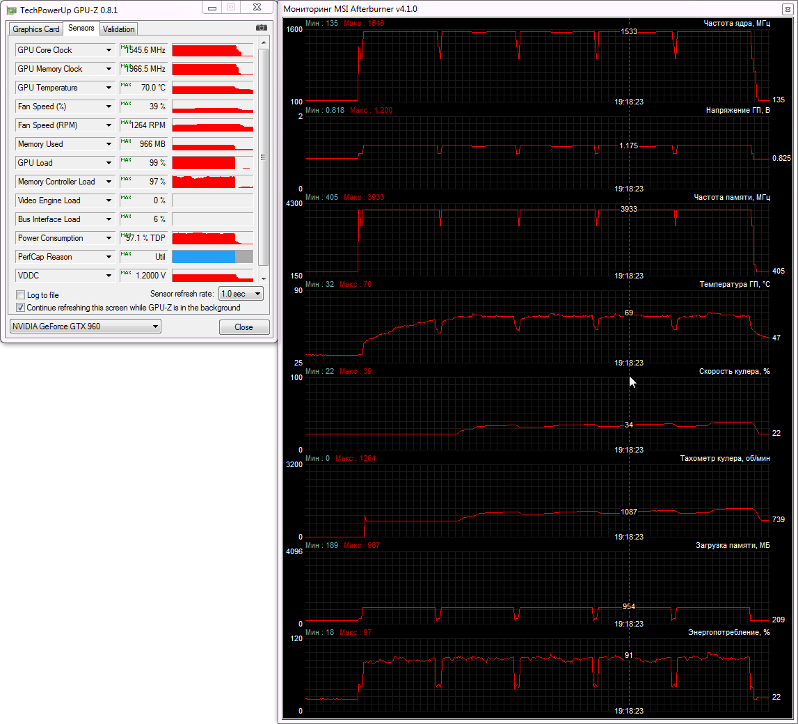 В итоге частоты Gigabyte GeForce GTX 960 G1 Gaming после разгона составили 1306-1369/7872 МГц.