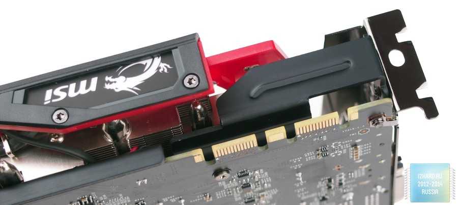 Как и все современные видеоускорители, видеокарта MSI GeForce GTX 970 Gaming 4G имеет разъем PCI-E версии 3.0. Впрочем, работа в старых материнских платах со слотами PCI-E 2.0 данной видеокартой также поддерживается.