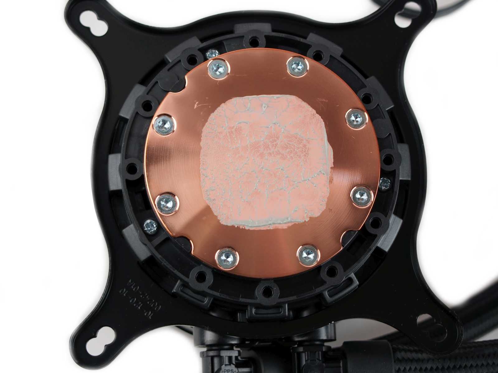 С использованием термопасты Arctic MX-2 отпечаток на теплораспределительной крышке процессора и контактной площадке водоблока получился следующим.