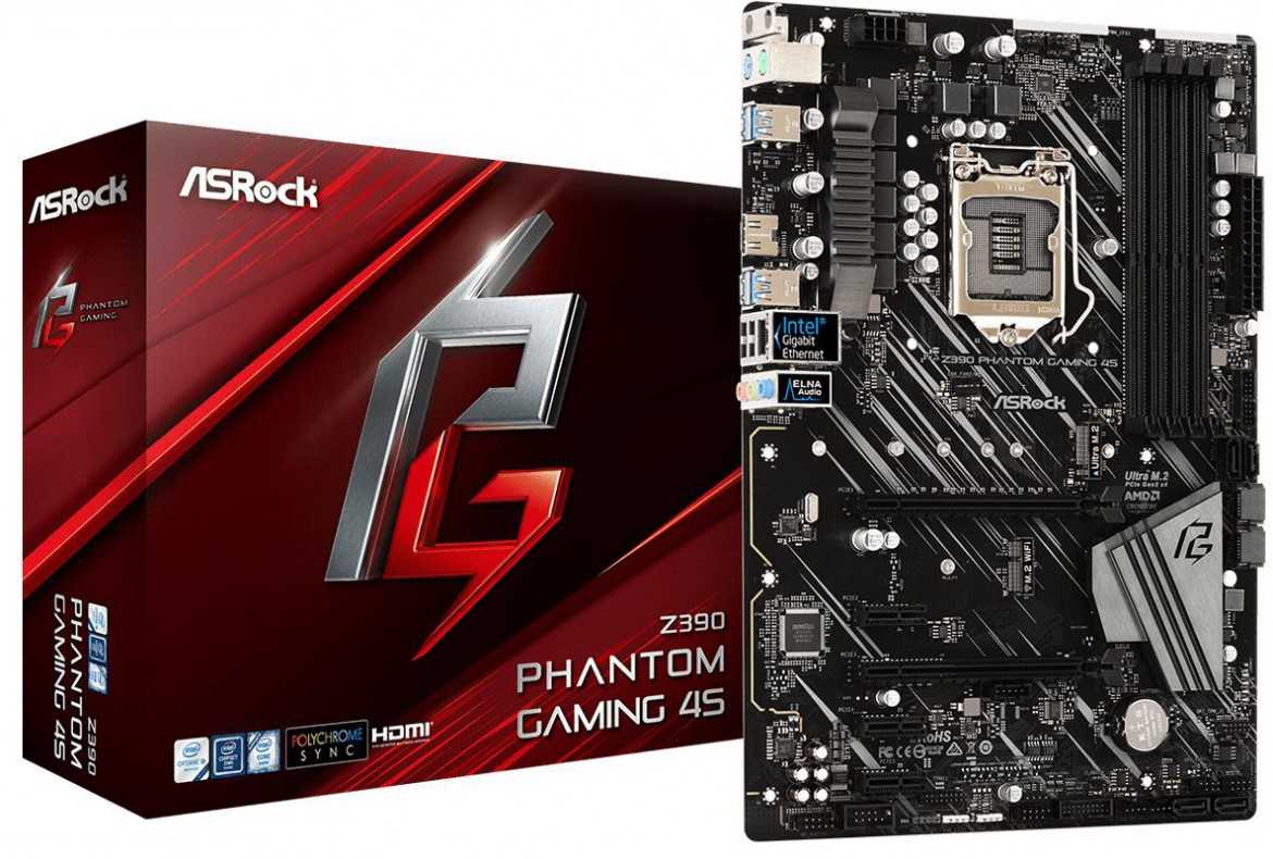 Материнские платы Z390 — это не только дорогие модели, но и множество дешевых. Одним из них является предлагаемый нами ASRock Z390 Phantom Gaming 4S. К сожалению, он не может похвастаться достаточно сильной системой электропитания, чтобы иметь возможность разогнать восьмиъядерные процессоры до предела, хотя он поддерживает их во время длительной нагрузки.