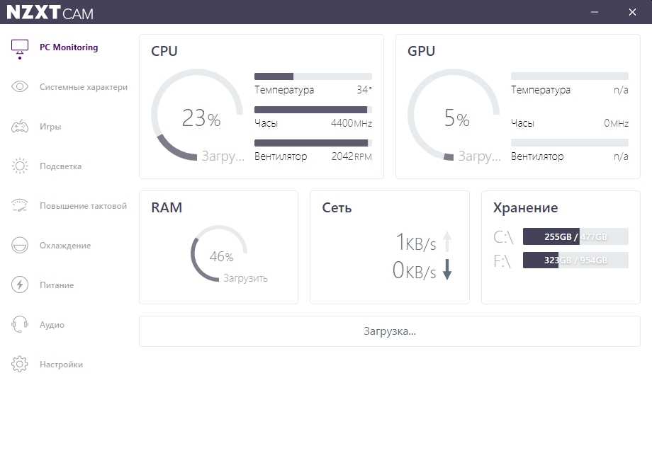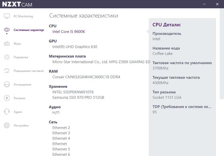Программа NZXT CAM позволяет уточнить установленные компоненты системы, предоставляя информацию о системных параметрах сборки.