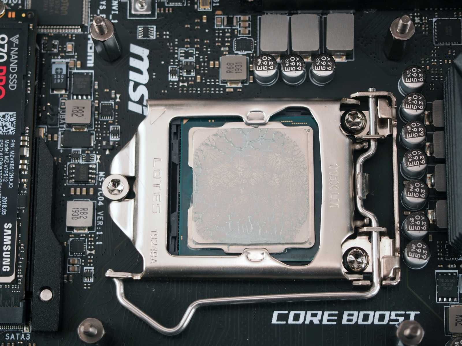 По рисунку отпечатка видно, что наиболее ярко выражено усилие прижима по центру крышки процессора.