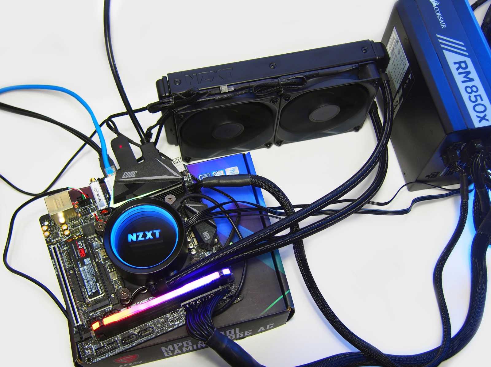 Эффективность системы жидкостного охлаждения Kraken X53 мы проверили сразу на двух процессорах: 6-ядерном Core i5-9600k и 8-ядерном Core i7-9700k. Процессоры устанавливались на материнские платы MSI Z390I Gaming Edge AC и EVGA Z370 Micro-ATX соответственно. В обоих случаях тестирование Kraken X53 выполнялось на открытом тестовом стенде.