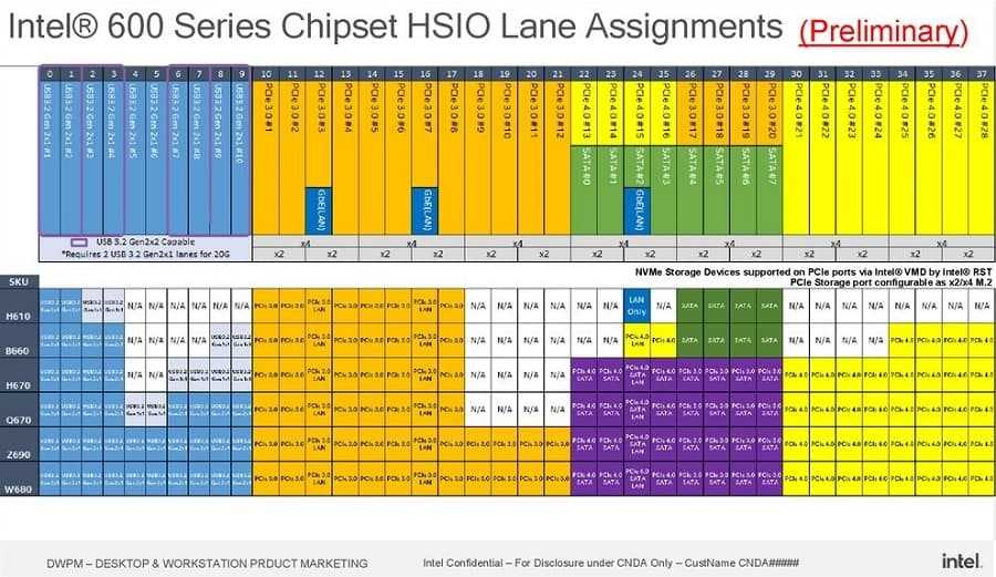 Внесены изменения и в конфигурацию портов USB (поддержка USB 3.2 Gen 2 теперь есть и у самого младшего H610), а беспроводной модуль получил возможность работы с Wifi 6E.