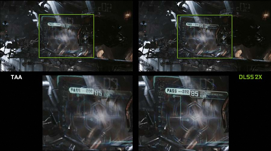 В первую очередь здесь очень может помочь поддержка Deep Learning Super Sampling (DLSS). C увеличением разрешения картинки традиционные алгоритмы сглаживания занимают слишком много ресурсов GPU, значительно снижая общую производительность. В ряде случаев можно обойтись без сглаживания, но нередко зубчатые края объектов становятся заметны даже в режиме 4К. Процедура DLSS позволяет с помощью вычислений на тензорных ядрах воссоздать сцену по предварительно анализируемым семплам. Таким способом можно получить качественную картинку, не используя для ее создания ресурсы основных вычислительных блоков GPU.