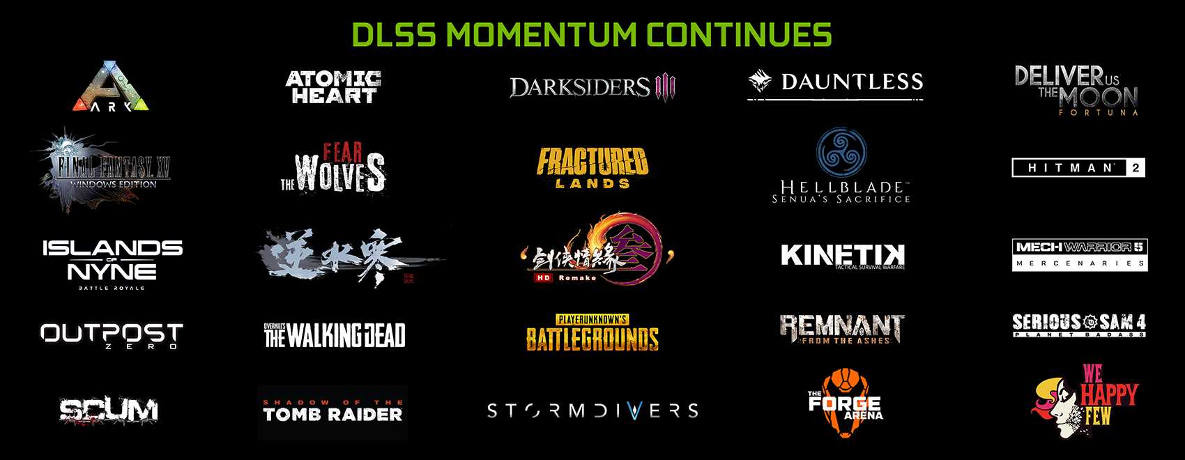Использование DLSS уже анонсировано для 25 проектов. Некоторые из них уже вышли и получат соответствующие апдейты, а часть игр планируются к запуску в скором времени. C детальным списком списком первой волны можно ознакомиться на сайте разработчика, туда попали интересные проекты.