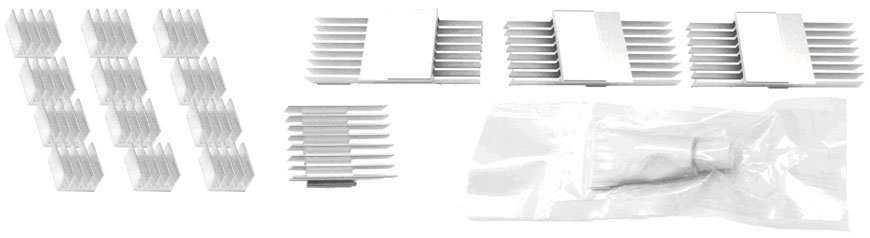 Ввиду отсутствия необходимых мне радиаторов на чипы памяти, был приобретен дополнительно комплект Arctic Cooling Arctic VR004 heat sink set for Accelero Xtreme Plus. В его комплект входят 12 маленьких радиаторов на чипы памяти и 4 больших радиатора + термоклей: