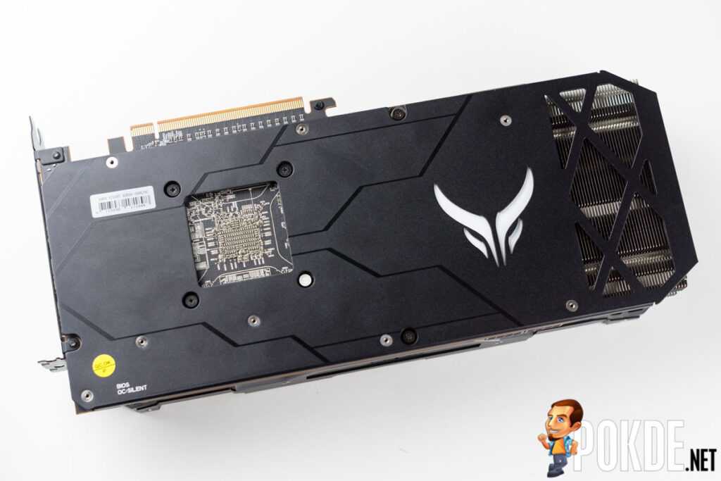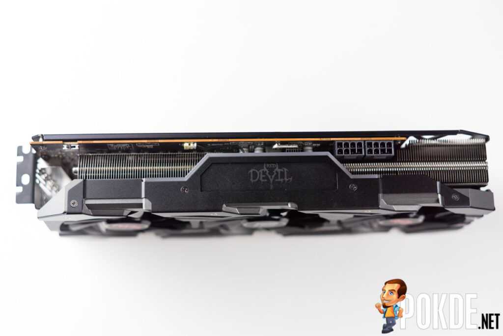 The thick metal backplate further adds on to the rigidty of this card. I somewhat fancy the overhang at the rear end of the PowerColor Red Devil Radeon RX 5700 XT, which sports cut outs to allow air to flow directly through the fin stack. Beside it is the Red Devil emblem that will glow in RGB.