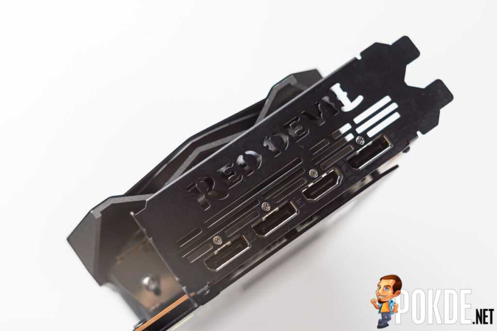 Unlike the fancy AORUS Radeon RX 5700 XT, this card sports a standard output configuration with three DisplayPort and one HDMI outputs. The Red Devil branding here will be upside down once installed in a case, which is a really weird decision by PowerColor.