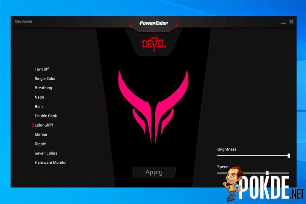 PowerColor only gives you the DevilZone which is where you can change the RGB lighting modes. It is really rudimentary and you can’t even assign the backplate and side RGB zones separately. For overclocking and monitoring, I guess PowerColor will point you towards Radeon Software instead.