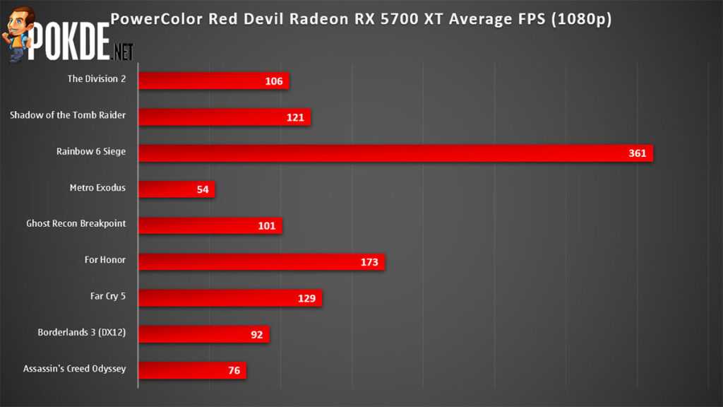 At 1080p, the PowerColor Red Devil Radeon RX 5700 XT is capable of handling above 100 FPS in most games, with the only game where the frame rate dips below 60 FPS in Metro Exodus.