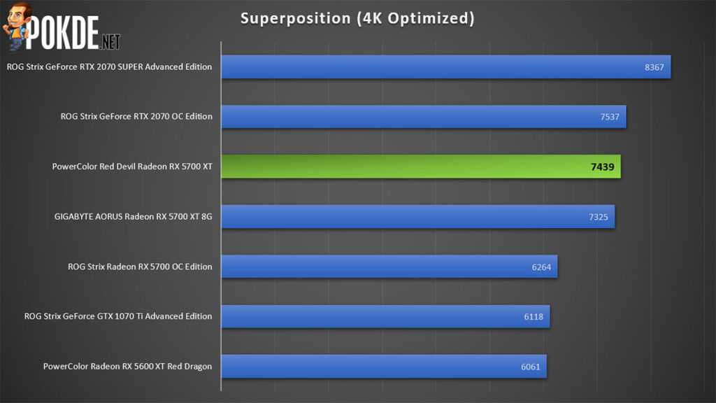 Superposition is where we the PowerColor Red Devil Radeon RX 5700 XT outperform its peers, but it still slots in below the GeForce RTX 2070 which is not exactly where you want to see it.