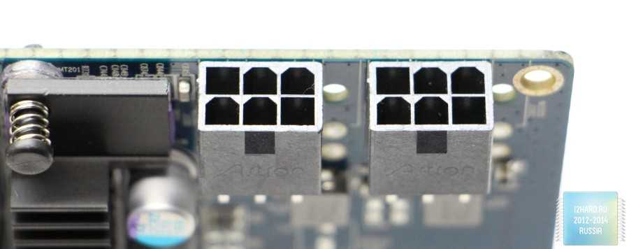 Для стабильной работы требуется качественный блок питания, имеющий мощность не менее 750 Вт с разъемами 8+6 пин. Потребление энергии может достигать 250 Вт. Для подключения мониторов имеются разъемы DisplayPort, DVI-D, DVI-I, HDMI. Два разъема Crossfire позволят объединить до четырех карт в одну систему. Подсистема питания выполнена по схеме 6+1+1, шесть фаз для питания GPU, одна фаза на память, одна для PLL.