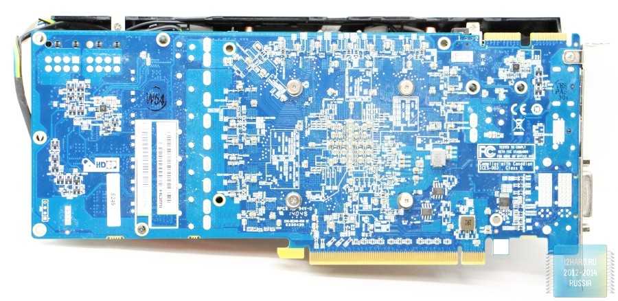 На верхней кромке PCB расположен лишь разъем для подключения мостика CrossFireX, тогда как шестиконтактный коннектор для подсоединения дополнительного питания установлен на задней грани.