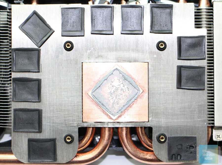 Также основание забирает тепло от чипов памяти и некоторых силовых элементов. Осуществляется этот процесс через специальные термопрокладки.