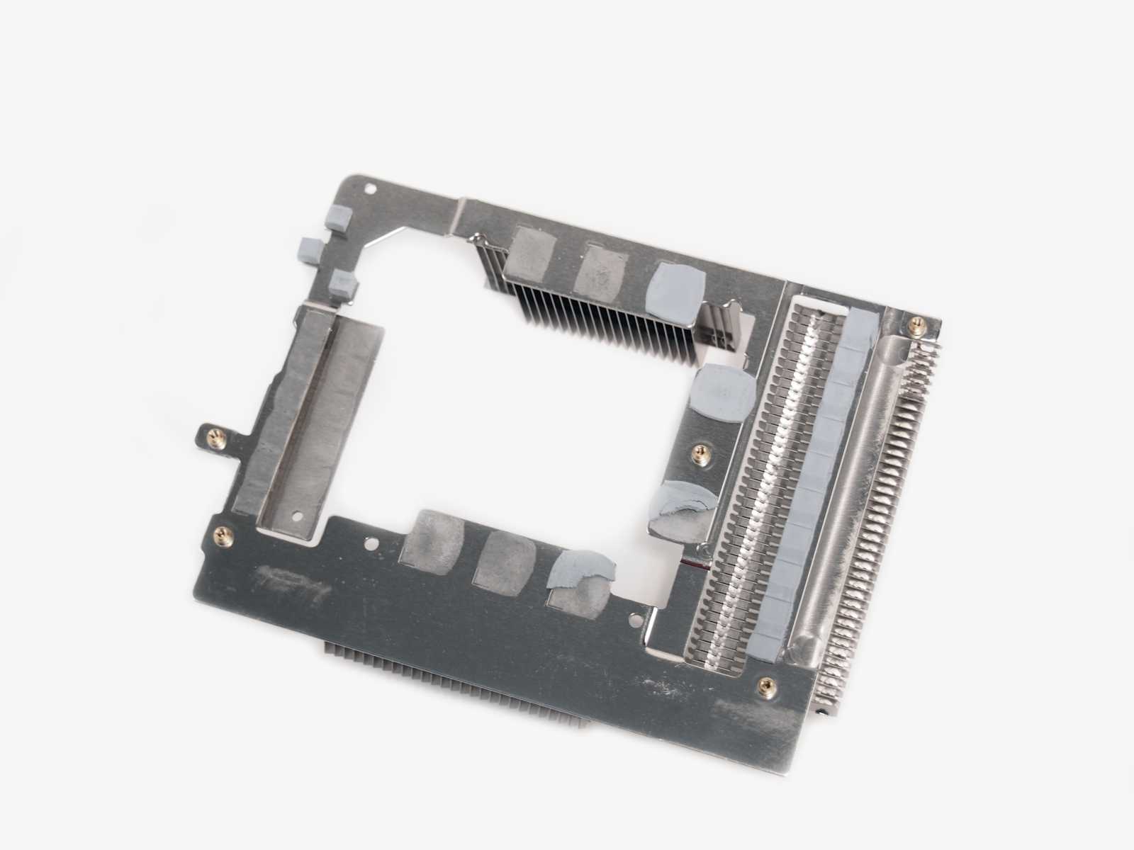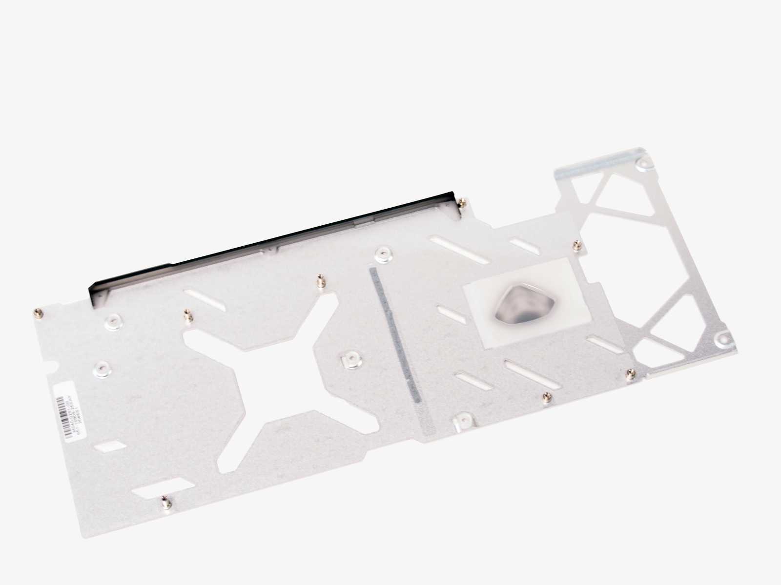 Для охлаждения чипов памяти GDDR6 и элементов зоны VRM используется отдельная конструкция, представляющая собой совокупность металлической контактной площадки, трех секций радиаторов и двух тепловых трубок. На эту часть системы охлаждения видеокарты также распространяется обдув от вентиляторов СО, как и на основной радиатор для рассеивания тепла с GPU.
