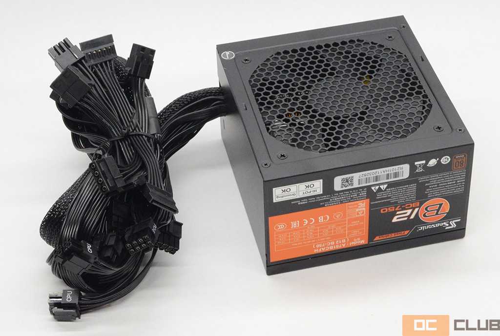 Хотя бывают полу- и целиком модульные блоки питания с Bronze-сертификатом, в Seasonic B12 на отключаемые кабели решили не тратить бюджет – и правильно! В этом ценовом сегменте модульность – непозволительная роскошь, сильно сказывающаяся на качестве и количестве «начинки». Что совершенно неудивительно с учётом небольшой разницы по мощности, модели на 750 Вт и 850 Вт имеют одинаковый комплект разъёмов: