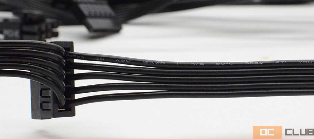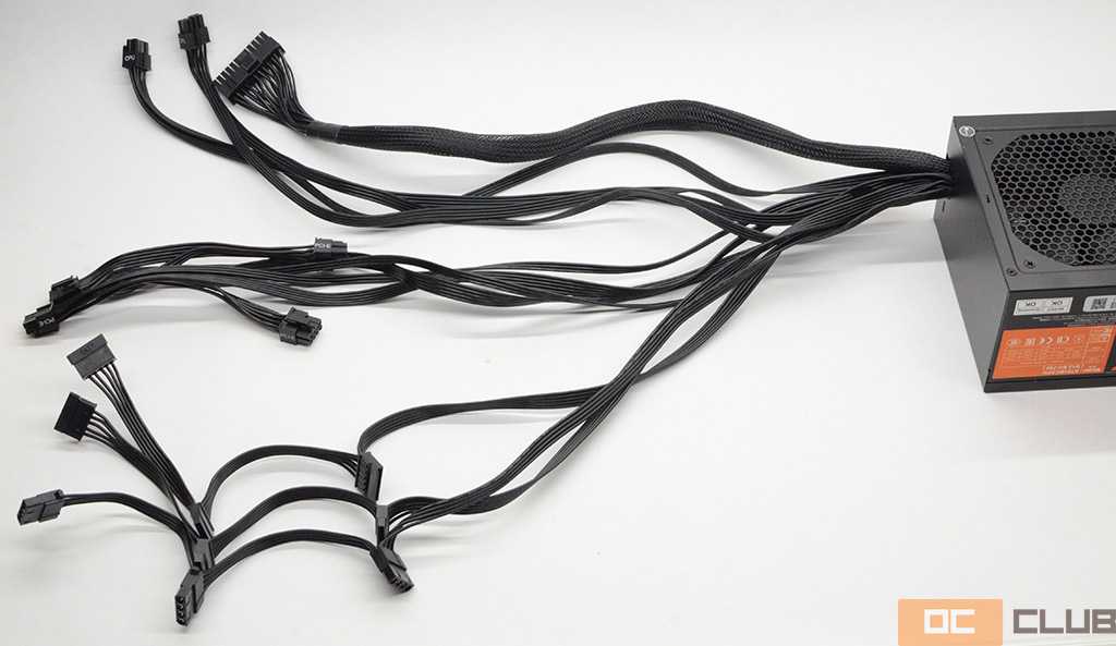 Кабели хорошо подобраны по размеру и количеству коннекторов, два отдельных кабеля EPS и питания GPU набраны проводами калибра 16AWG, имеется достаточное количество разъемов питания периферийных устройств.