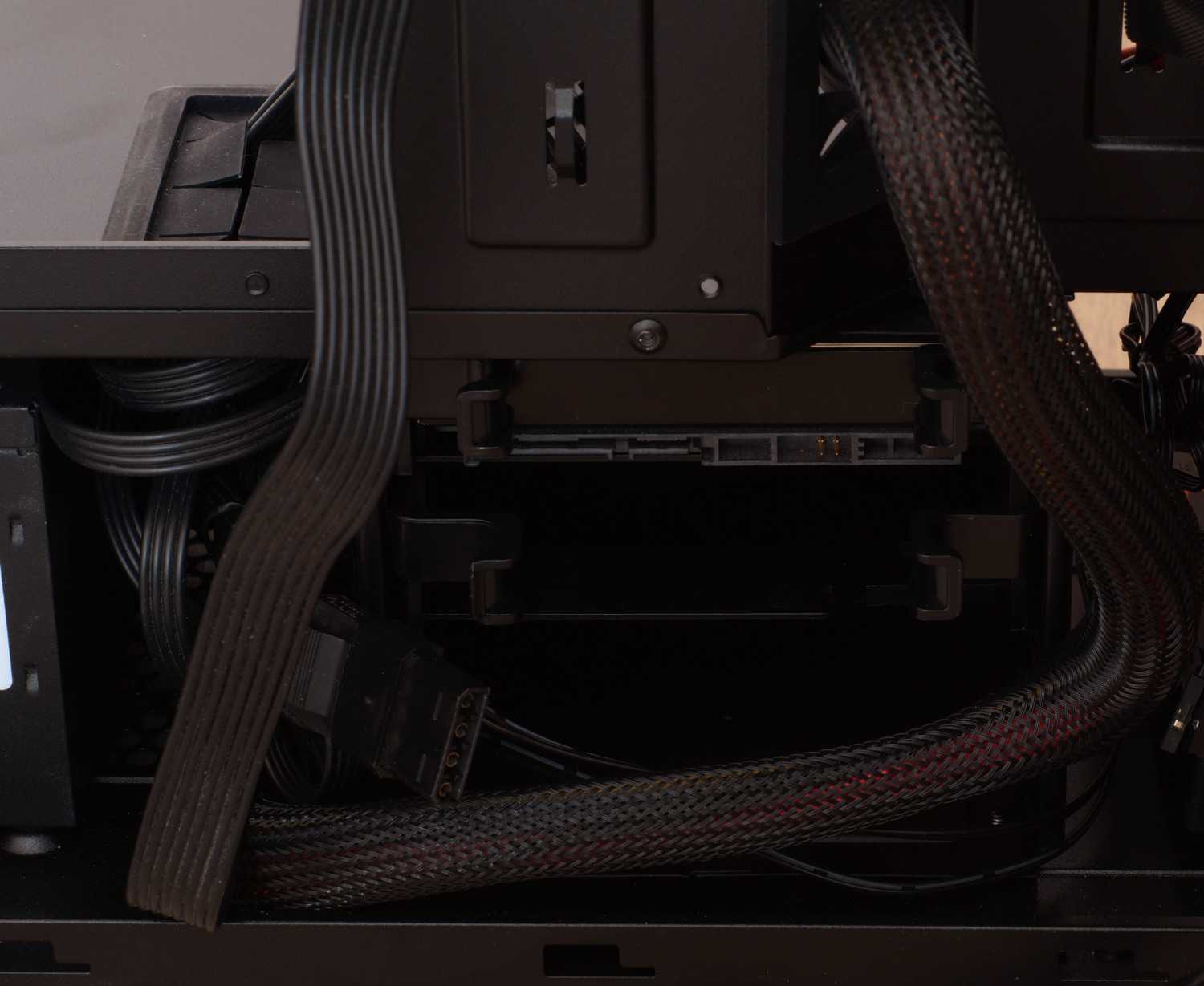 Как только вы окажетесь внутри футляра, вам понадобится отвертка, но даже ее вы будете использовать экономно. Lucid LD03 имеет съемный кронштейн для накопителей, который помещает их близко к окну боковой панели. Кронштейн вмещает два 2,5-дюймовых твердотельных диска или один 3,5-дюймовый жесткий диск и 2,5-дюймовый твердотельный накопитель. Если вам нужно больше места для большего количества накопителей, Mini-ITX может не для вас.