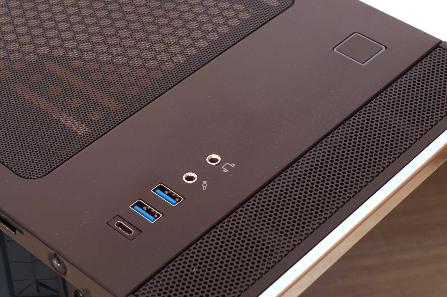 The front-panel items include the usual suspects: two USB 3.0 Type-A ports, mic and headphone jacks, and a power button. Once you remove the vented hood, you can access the rest of the computer’s I/O connections and your graphics card’s connectors.