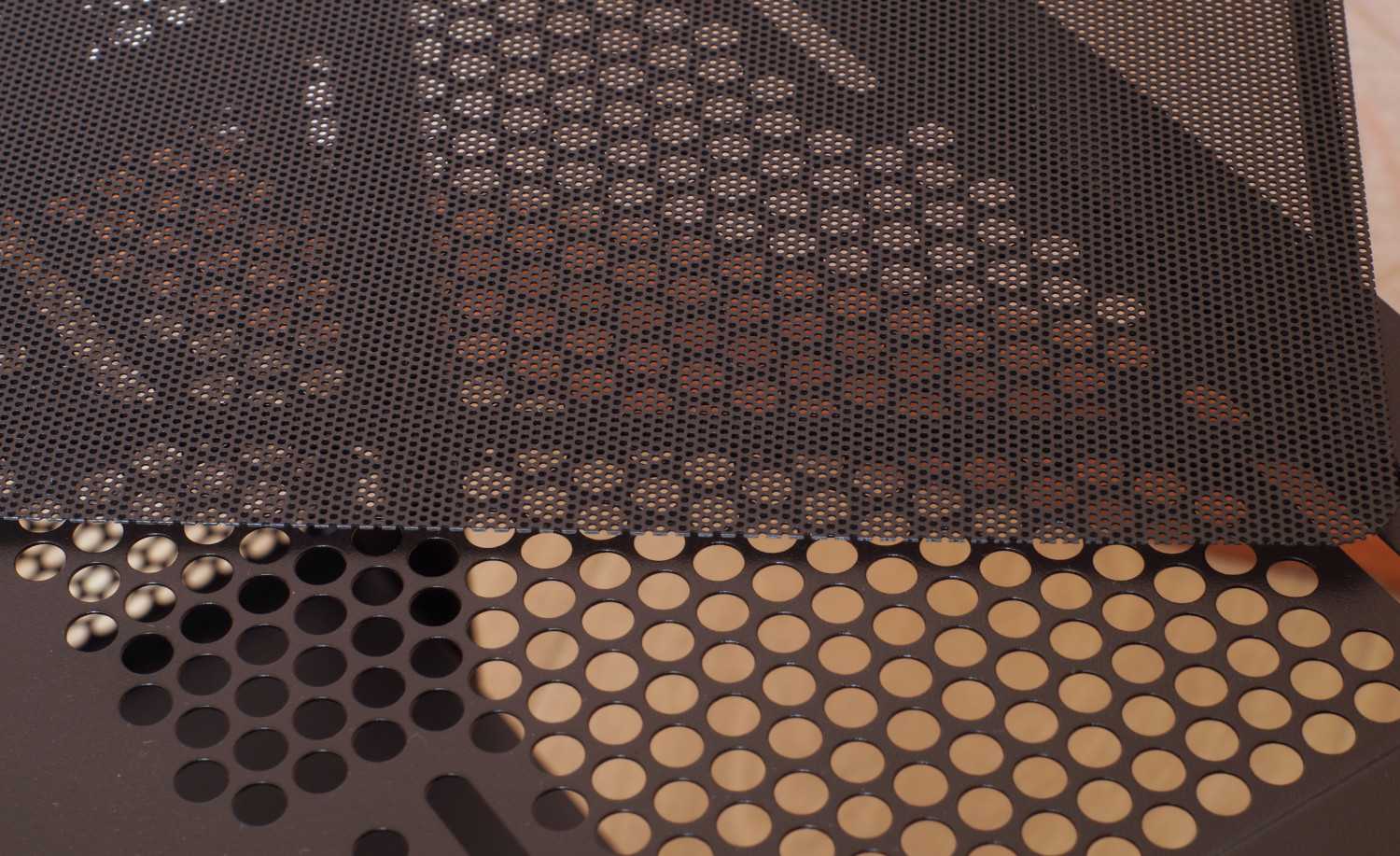 Причем заметно наличие отверстий для вентиляции ближе к лицевой части (приток), где также нашлось место для двух портов USB 3.0 типа А, одного USB 3.1 Gen1 типа C, двух 3.5 мм миниджек разъемов под наушники/микрофон и кнопка питания. В остальной части предусмотрена перфорация для оттока воздуха. Для минимизации проникновения внутрь пылисверхуприсутствует легкосъемная сетка на магнитах.