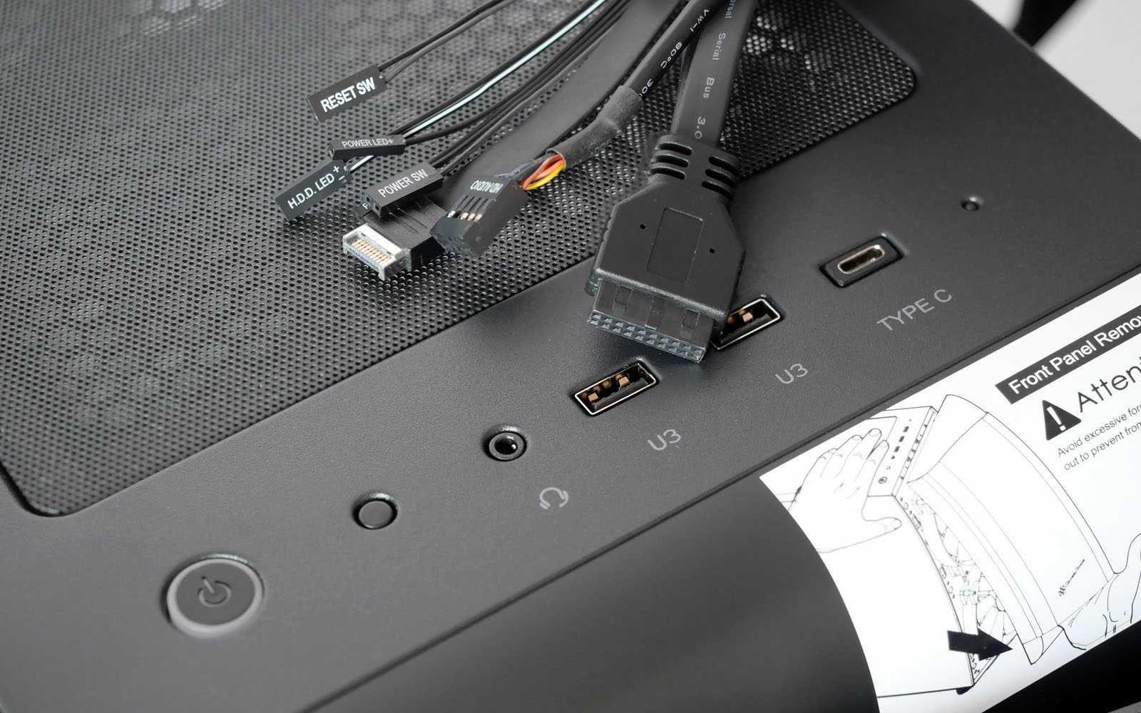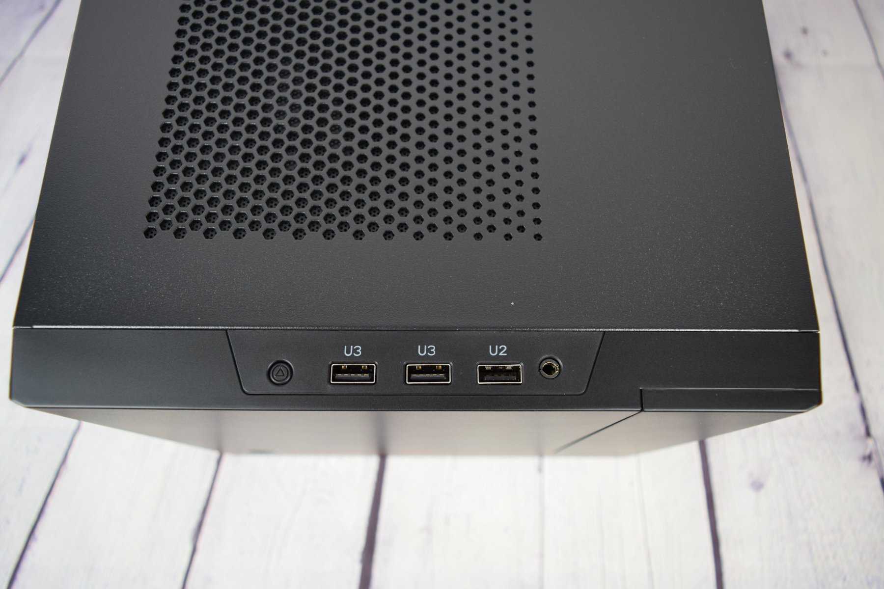Сама передняя панель ввода-вывода состоит из двух портов USB 3.0 и порта USB 2.0, а также комбинированного аудиоразъема. (Здесь нет порта USB-C, что означает отсутствие современного внутреннего соединительного кабеля USB-C, для которого не каждая материнская плата mini-ITX, вероятно, будет иметь соединительный разъем в любом случае.) Кнопка питания отключается, сама, на передней части корпуса.