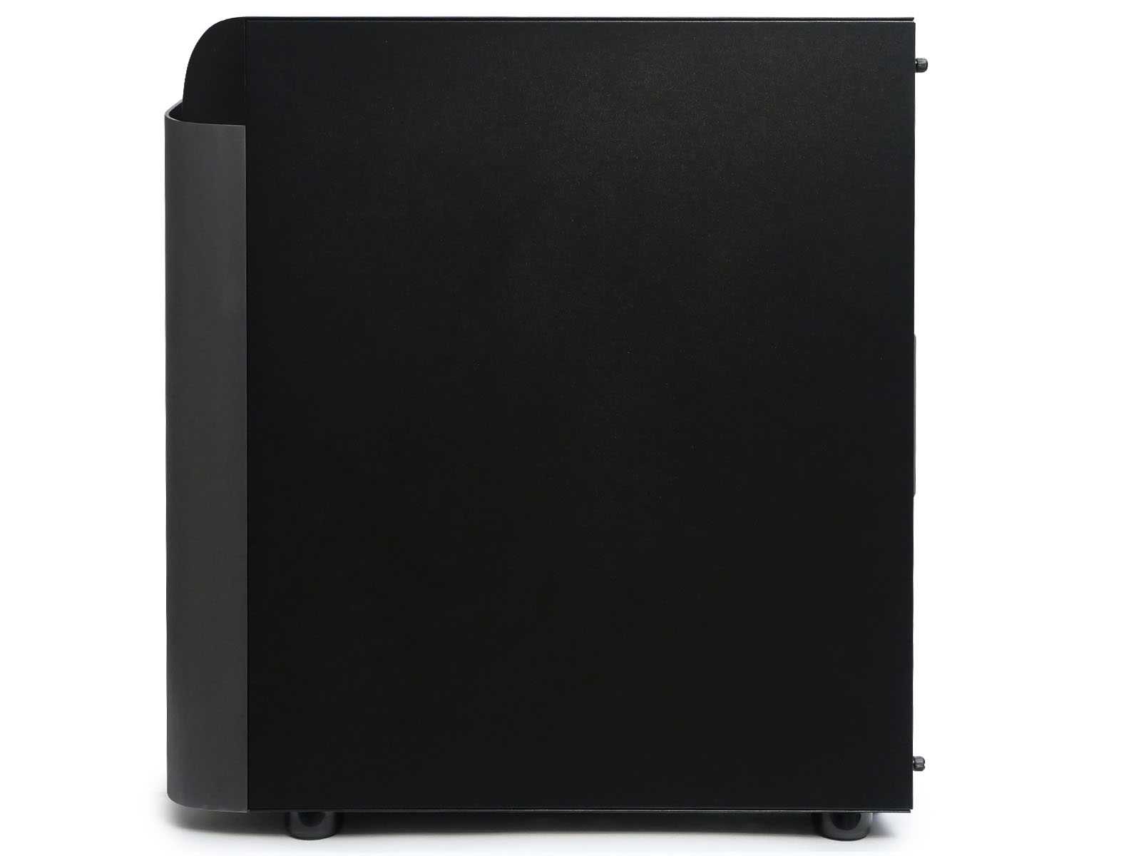 Корпус доступен как в черной, так и в белой цветовой гамме, обе из которых имеют смещенную золотую линию спереди, чтобы добавить немного контраста. Передняя панель, а также нижняя панель — единственные лицевые стороны этого корпуса, которые не имеют перфорации для увеличения потока воздуха.