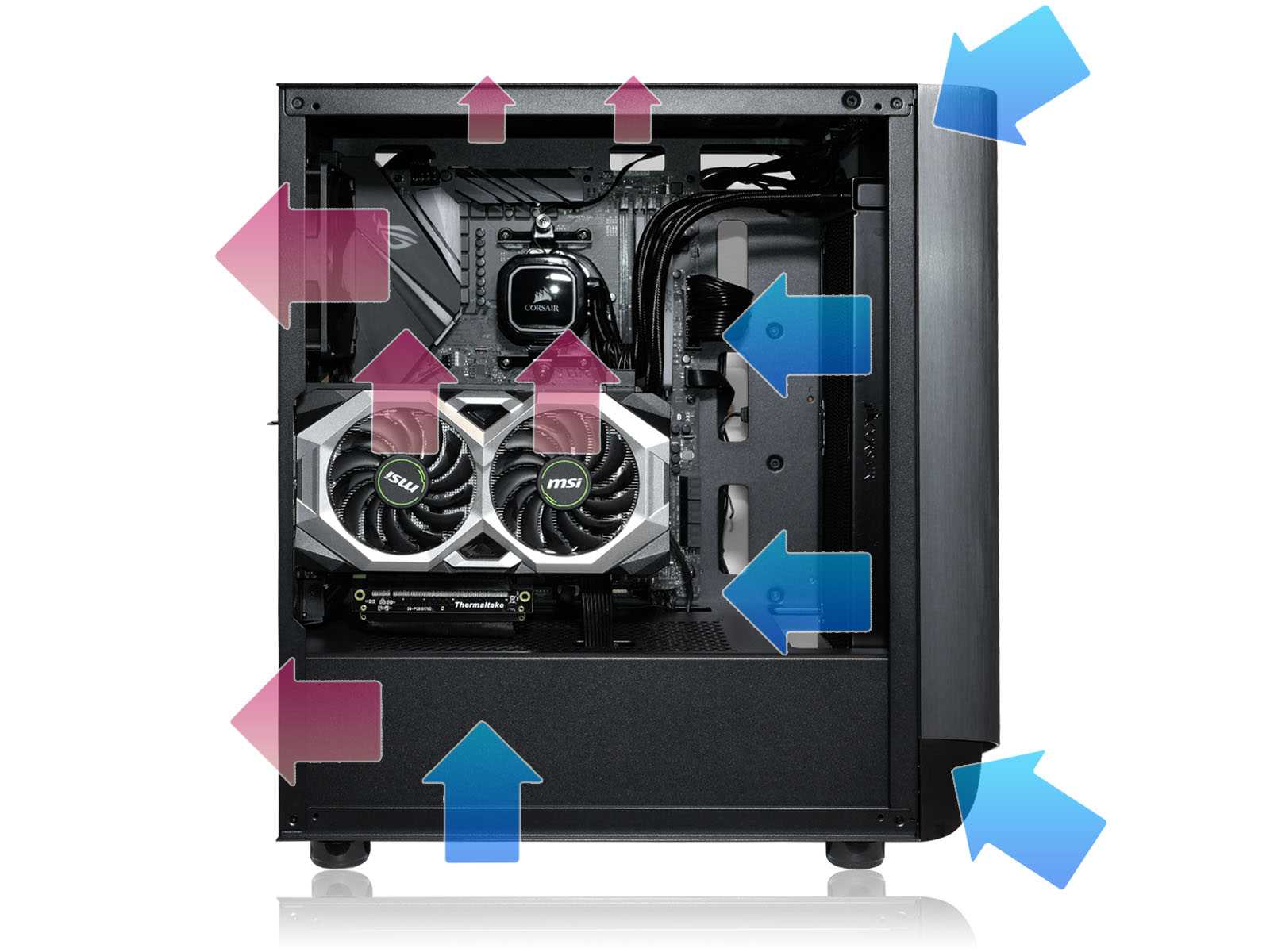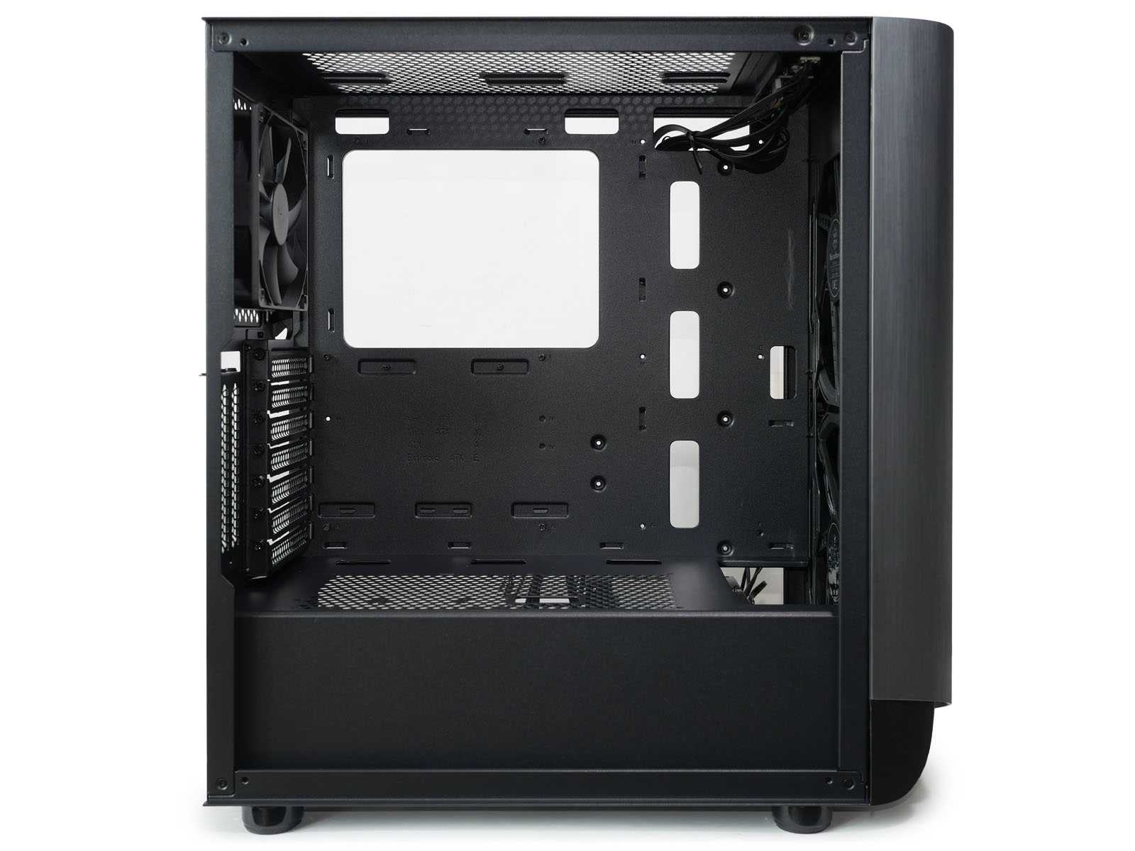 В корпусе уже предустановлены: один 120-мм вентилятор сзади и два 200-мм — спереди. Все чёрного цвета и без ARGB-подсветки.