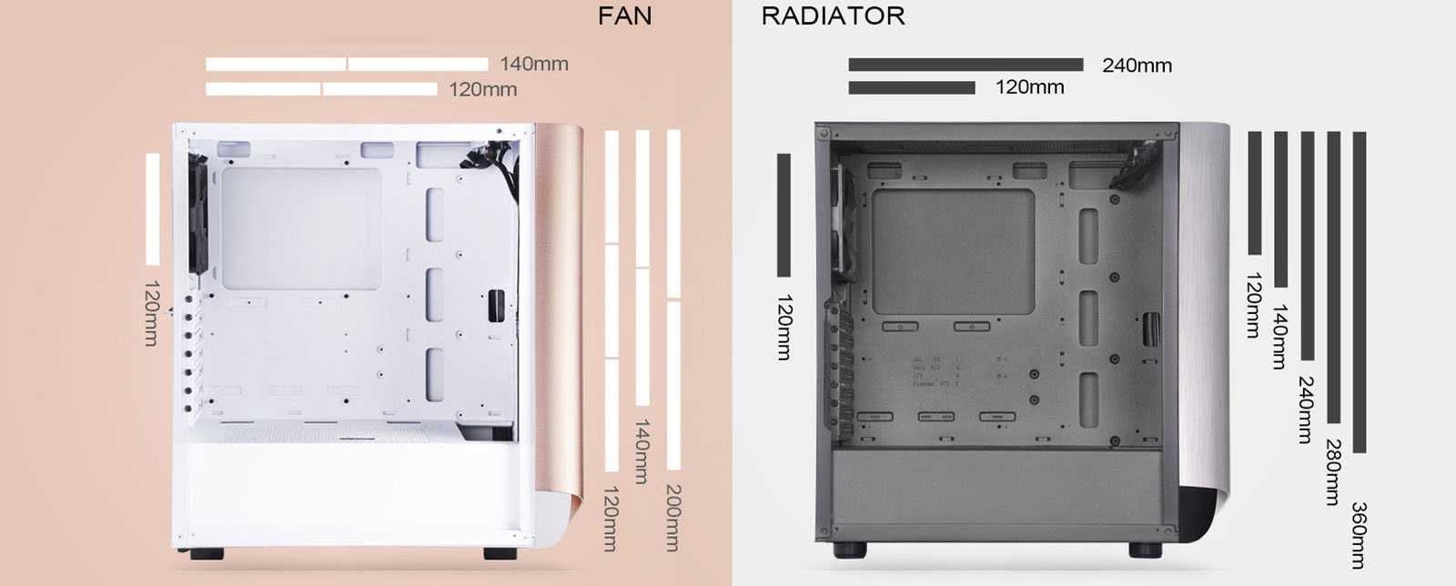 Корпус SETA A1 оснащён набором мест крепления как вентиляторов, так и радиаторов систем жидкостного охлаждения до 360 мм. Совместимость с кулерами центрального процессора также неплохая — вместятся башни высотой до 175 мм.
