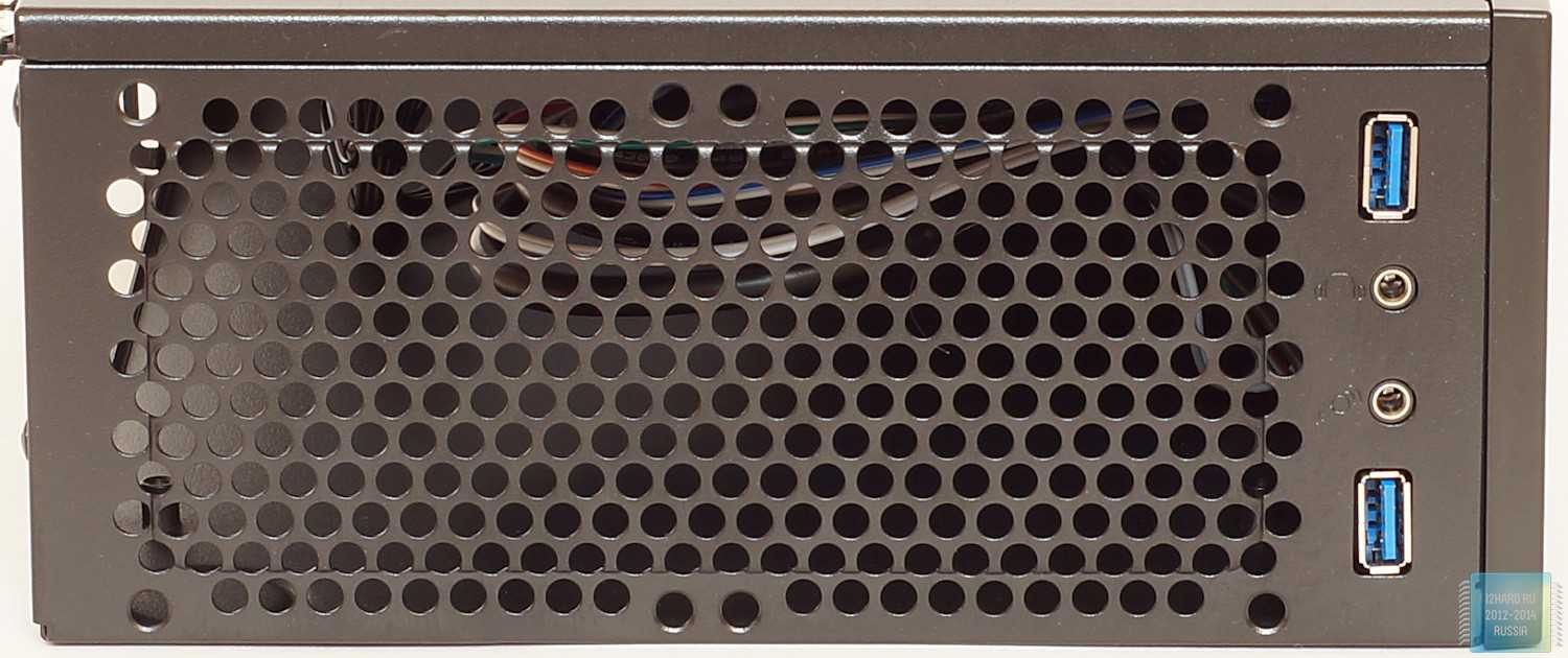 Таким образом платы расширения (видеокарта) должны охлаждаться более эффективно, так как забор воздуха будет происходить с правой боковой стенки, где можно разместить и дополнительно два 80 мм вентилятора. Именно на ней разместились 2 порта USB 3.0 и разъемы HD-аудио (наушники, микрофон). Глубина у корпуса небольшая – 205 мм.