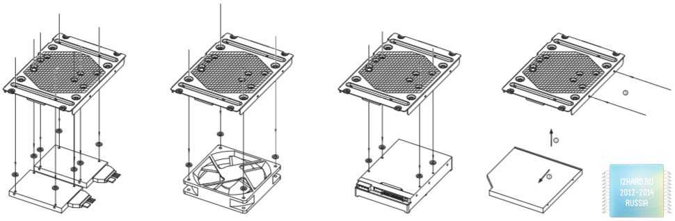Функции последнего все те же,что для корпуса SilverStone ML06 – обеспечить установку 2 х 2.5″ накопителей или 1 х 120 мм вентилятора или 1 х 3.5″ накопителя или 1 х слим-привода толщиной 9.5/12.7 мм.