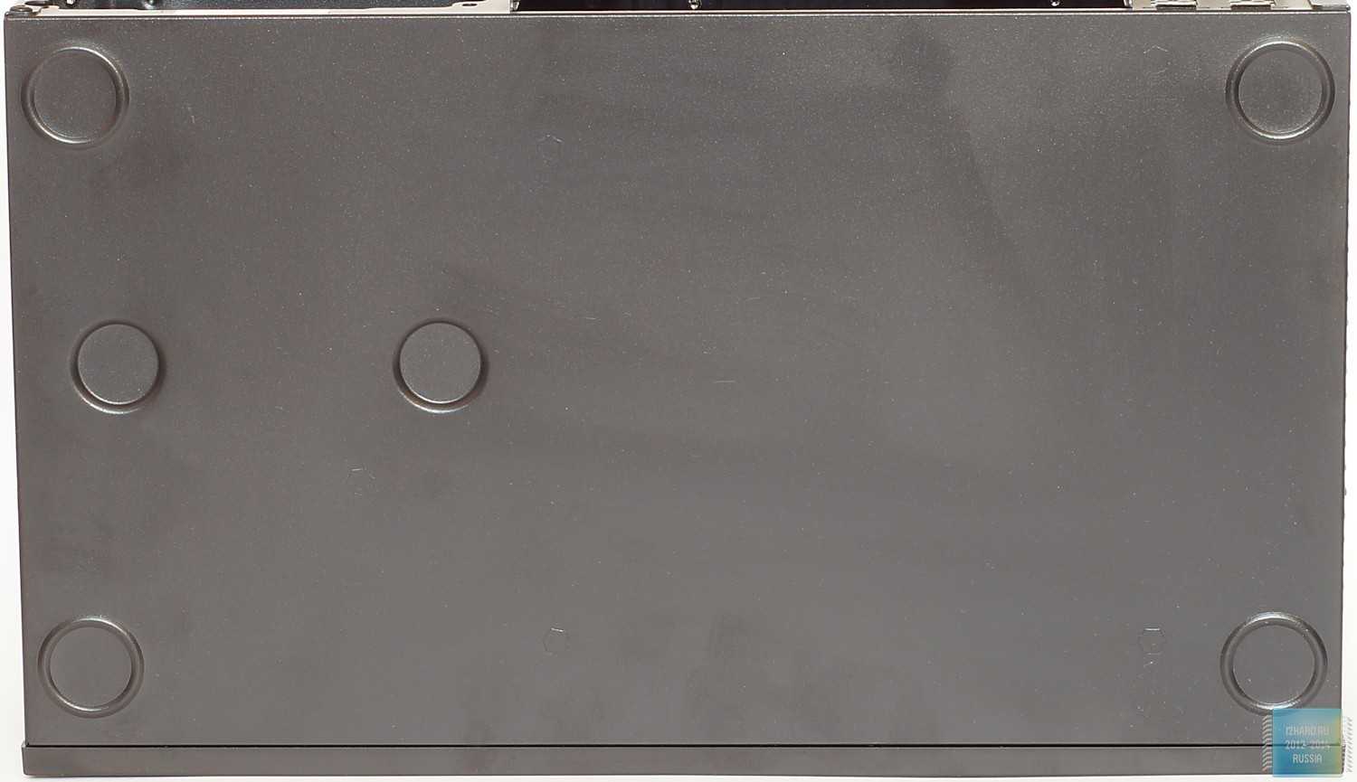 … как и дно корпуса, на котором есть места под установку резиновых ножек для горизонтального размещения.