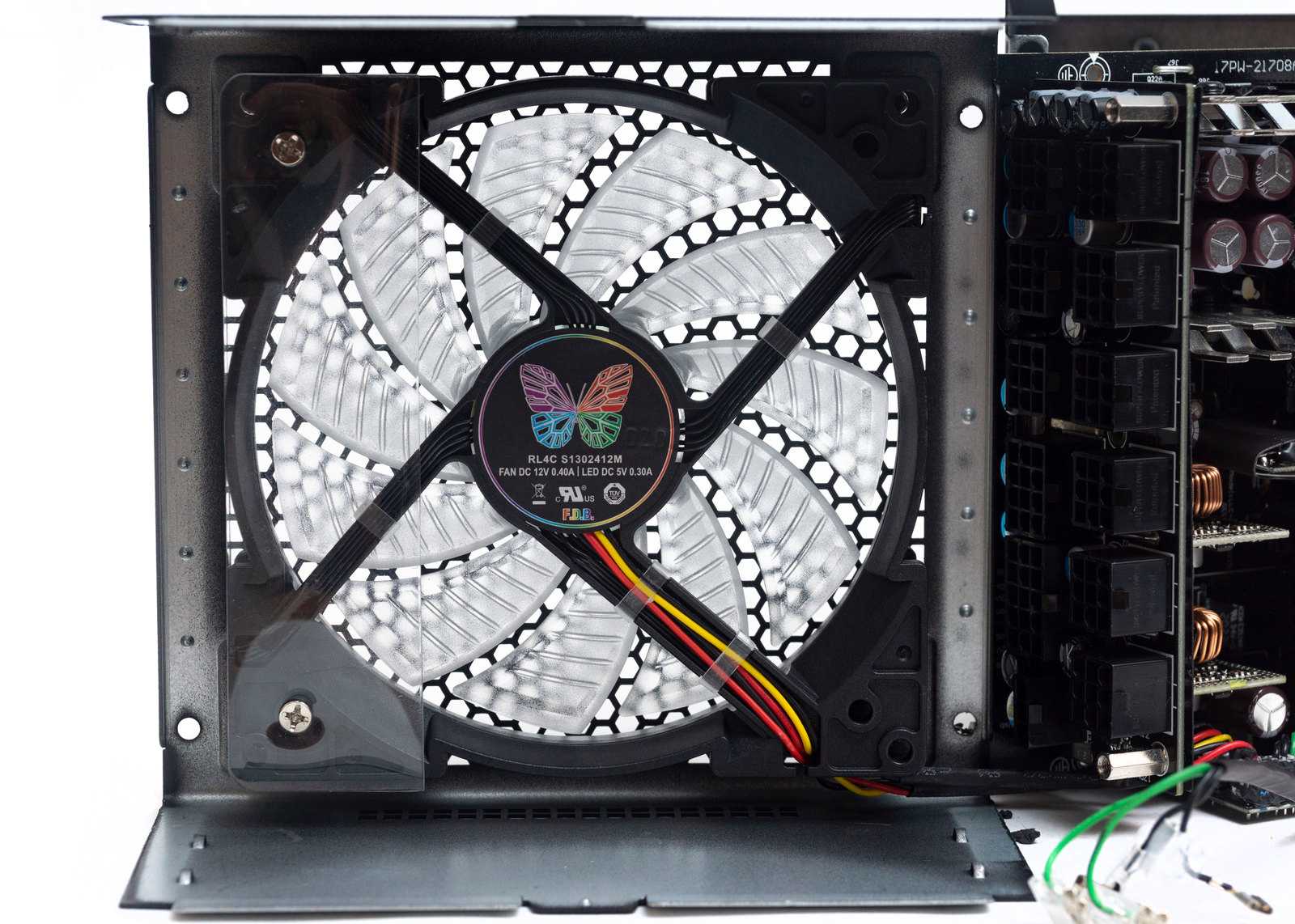 Для охлаждения и подсветки используется фирменный вентилятор RL4C S1302412M на основе гидродинамического подшипника.