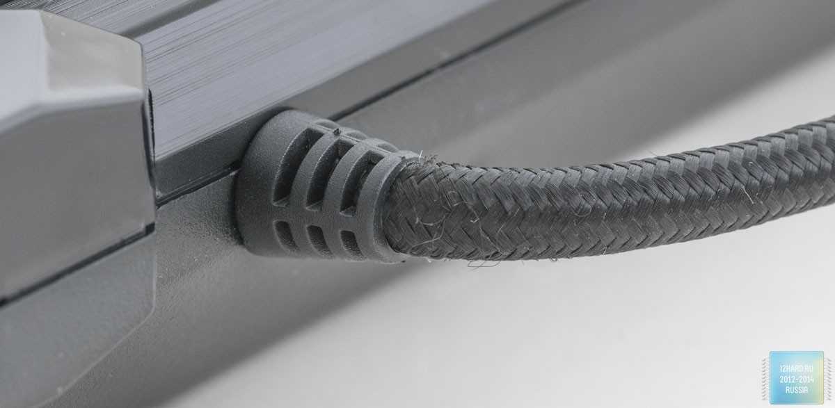 Кабель обладает эффектом памяти, уоснования клавиатуры усилен наизгиб резиновой вставкой длиной 12,5мм, толщина провода составляет 6,4мм.