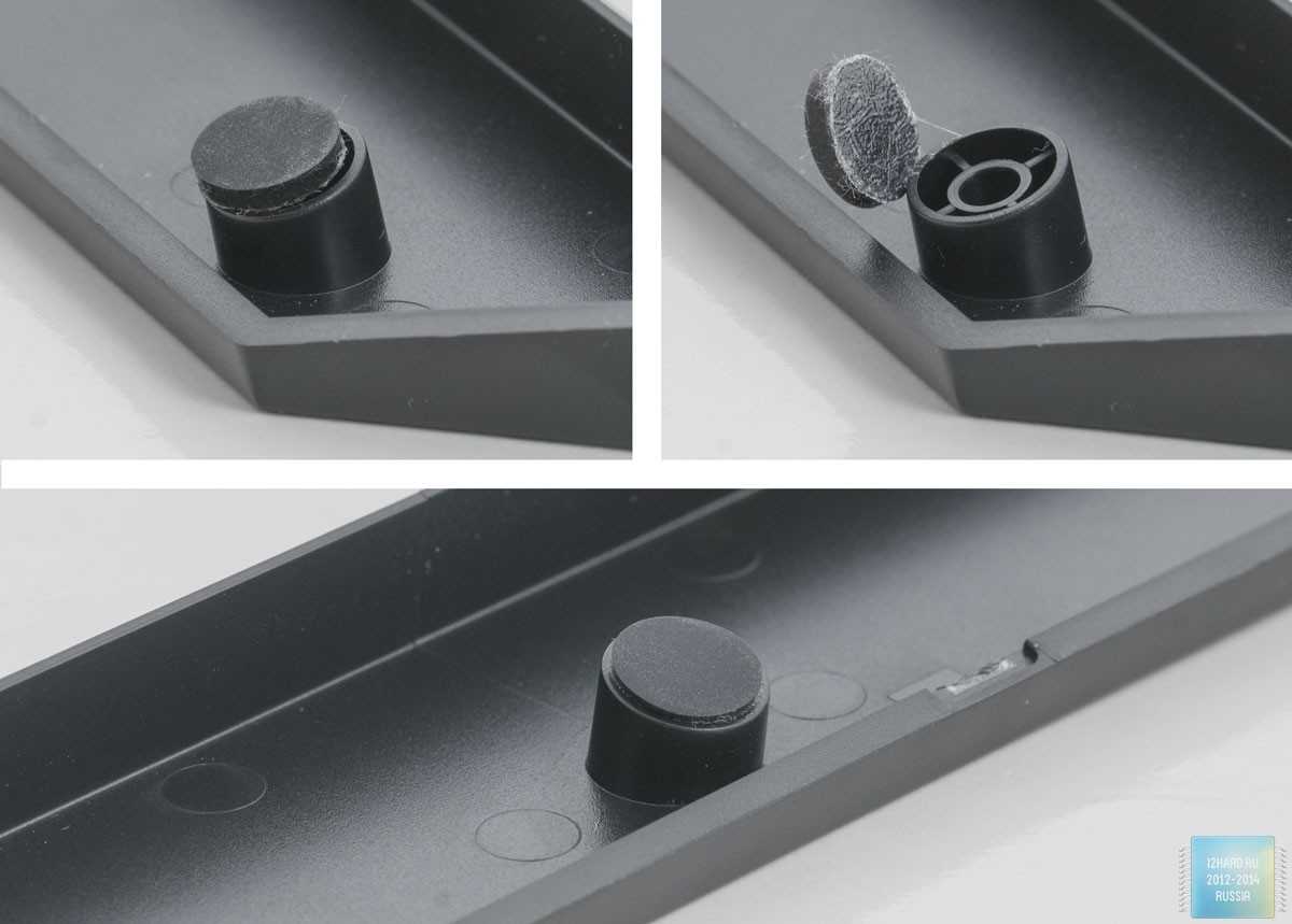 Попериметру размещены четыре резиновые фактурные ножки (ширина 28,5мм) идве раскладывающиеся (ширина 17,5мм), основание которых также прорезинено.