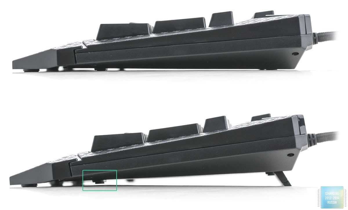 Клавиатура сразложенными ножками ибез подставки под ладони: