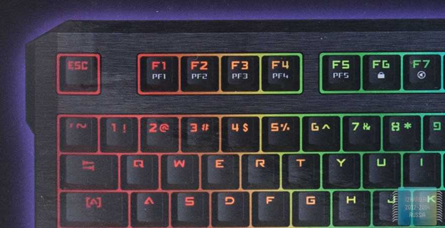Иллюминация выполнена превосходно— это касается как равномерности подсветки символов, так иплавности эффектов. Вопросы вызывает наличие только последовательного переключения эффектов без возможности выбора нужного одним нажатием.